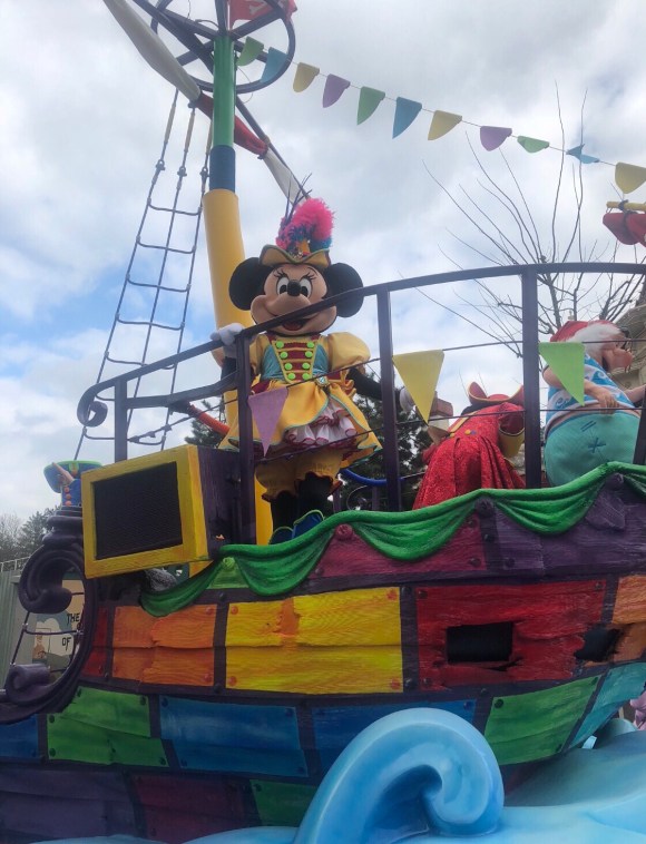 - ‘Disney Pirate or Princess – Make your choice’ – WHAT A SHOW! This parade has everything you could want from a Disney show; Beautiful colourful floats, Princesses, Pirates, Mermaid Ariel π, dance routines, live singing, acrobatics, audience interaction, amazing costumes, Prince Mickey, Pirate Minnie … it is AMAZING. There are three key places to watch this parade. Each team stop and perform a brief show on the way into the Hub, the team heading down from Small World stop at the castle stage and the team heading up from Town Square stop on Main Street. The team in each location alternates each show. The floats then head into the hub where the teams then do dance routines on the stages. Please be aware, whilst the centre of the hub is an amazing viewpoint for all the stages, you cannot get out of the hub until the parade has moved on. This show/parade was by far my highlight of the season, I could easily watch all 4 shows every day and see something different each time.